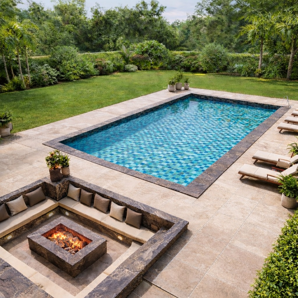 At Nexthavan Realty, we specialize in designing and constructing custom swimming pools for villas, resorts, and nature-inspired properties. Our pools combine aesthetic appeal, safety, and durability, perfectly blending with the surrounding natural landscape.